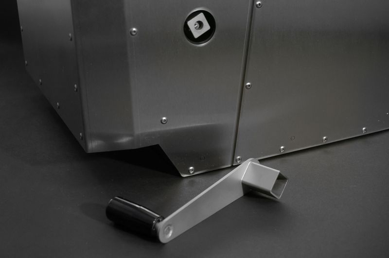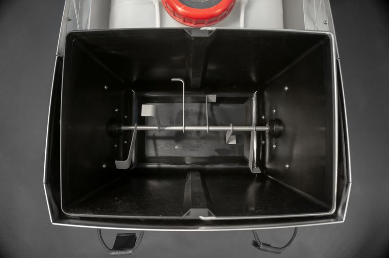 - Solids container (volume 15 liters) with agitator and removable handle (both stainless steel, handle optionally on the right or left side without conversion)